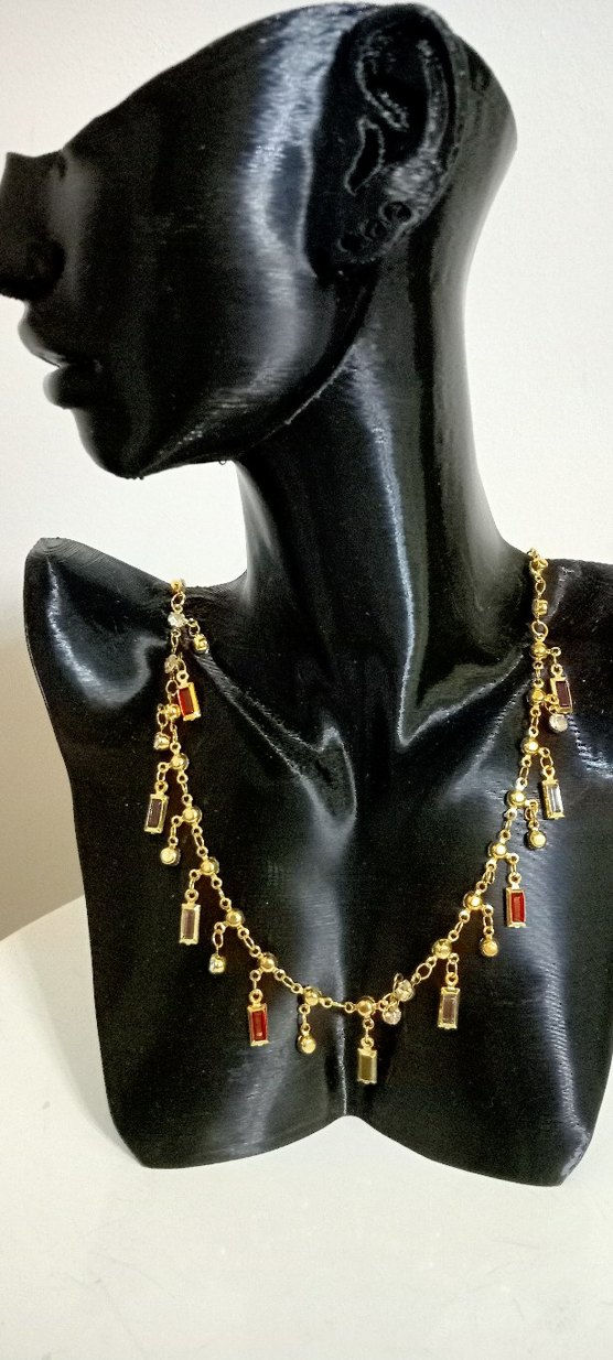Altın renkli kısa kolye, zincir detaylı ve renkli etnik figürlerle süslü, bohem parti tarzına uygun.14 k xuping vip celik kolye