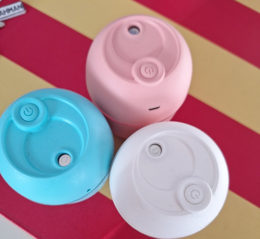 Pembe, mavi ve beyaz renklerde, kolay kullanımlı düğmeli küçük hava temizleyici ve nemlendiriciler. Küçük alanlar için uygun. ️3lu