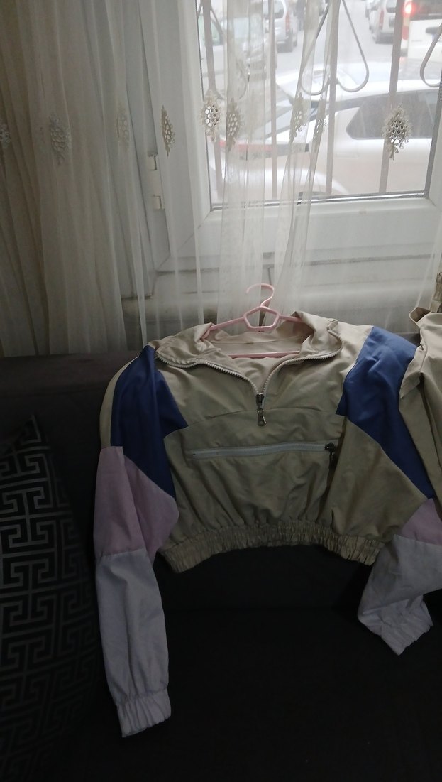 Kadınlar için bol kesim, uzun kollu, yüksek yakalı, sentetik kumaştan yapılmış renkli mini spor ceket. Fermuarlı ve günlük kullanıma uygun.