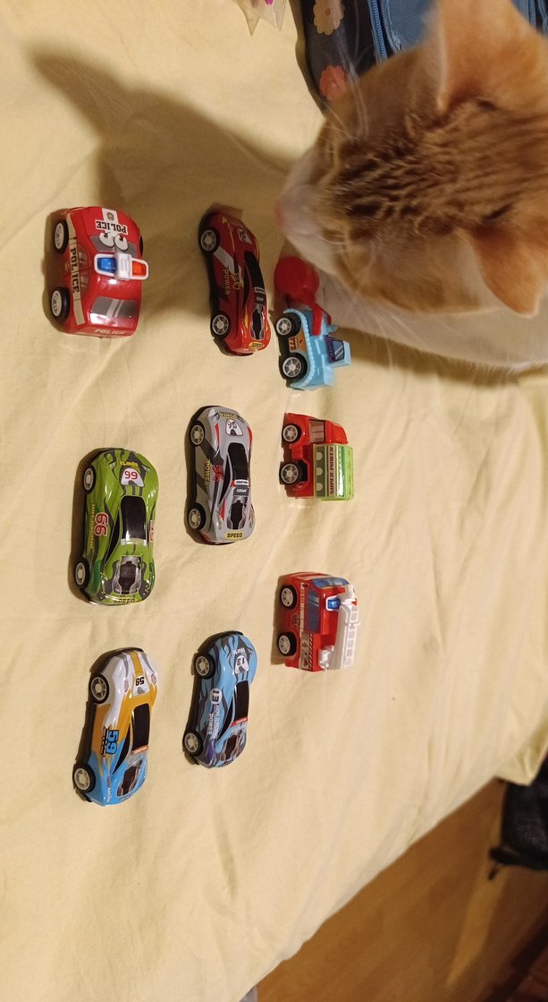 Çeşitli tasarımlarda, renkli mini oyuncak arabalar seti.