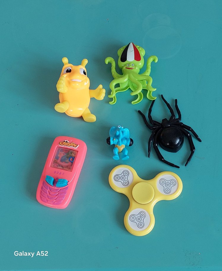 Renkli mini oyuncaklar, spinner, oyuncak telefon ve küçük hayvan figürleri içerir. Eğlenceli anlar için uygundur. Küçük telefon oyuncak hediyedir.