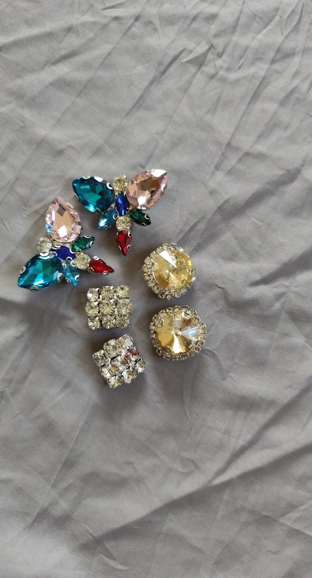 Renkli, mini uzunlukta payetli ve desenli kadın küpeleri, gösterişli ve bohem düğün stiline uygundur. ✨