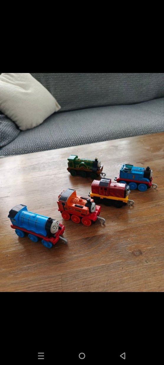 Beş farklı renkte canlı mini tren oyuncak seti, hayal gücünü destekler.