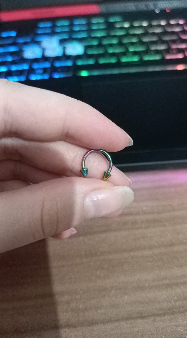 Renkli ve yarıklı minimalist rock punk tarzında, asi bir hava katan piercing.
