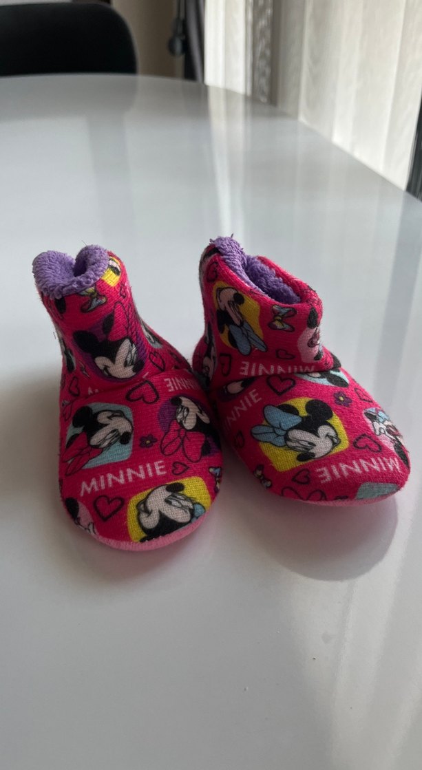 Renkli Minnie Mouse baskılı, örgü detaylı kız çocuk terlikleri, yumuşak ve sıcak keçe kumaştan üretilmiştir. Hiç giyilmedi fazlalıktan satıyorum