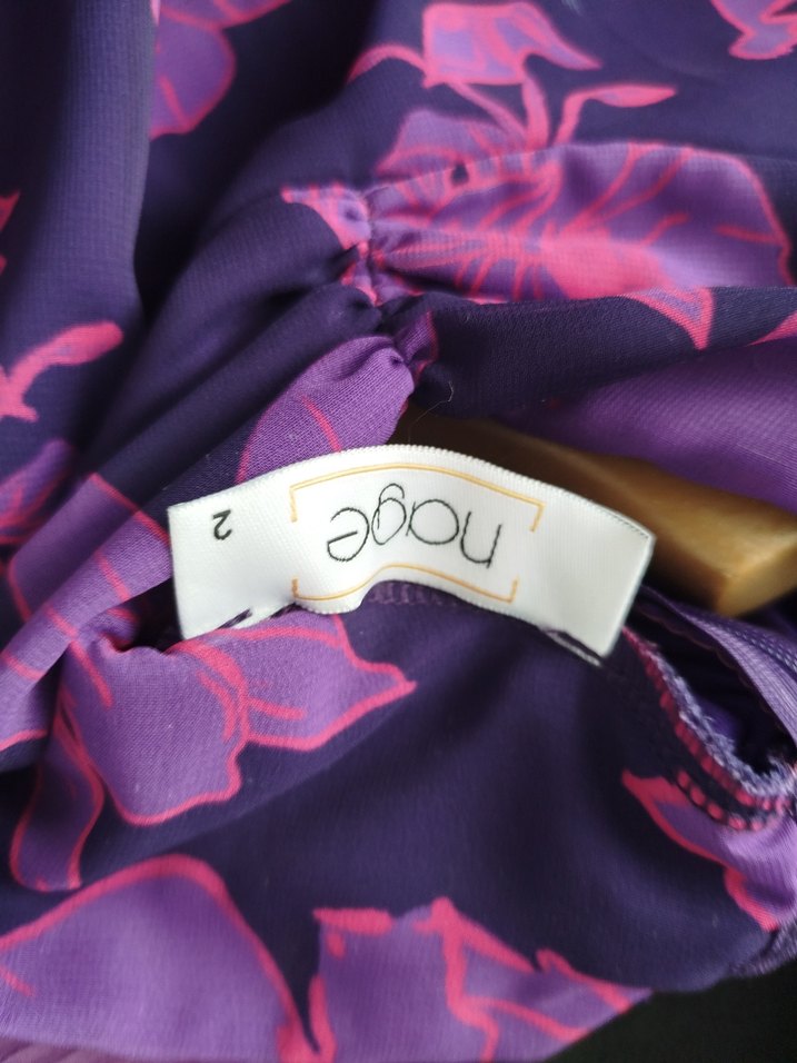 Yumuşak kumaşlı, renkli mor batik yoga kayışı, üzerinde 'aboy' etiketi bulunur.
