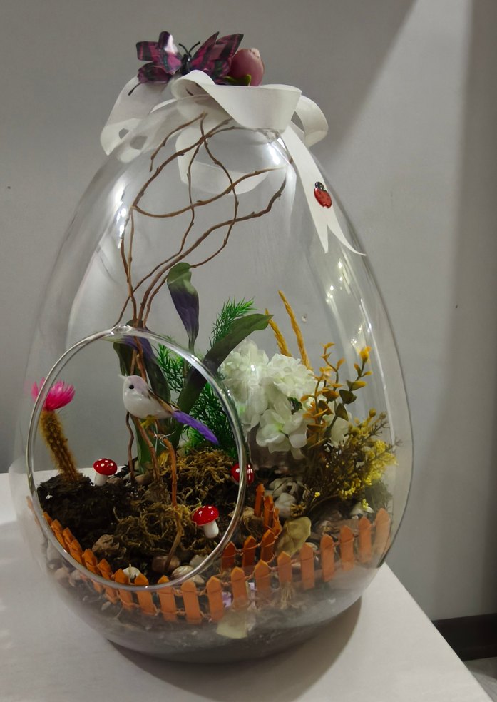 Renkli Mor Dekoratif Cam Fanus & Teraryum - Görsel 1
