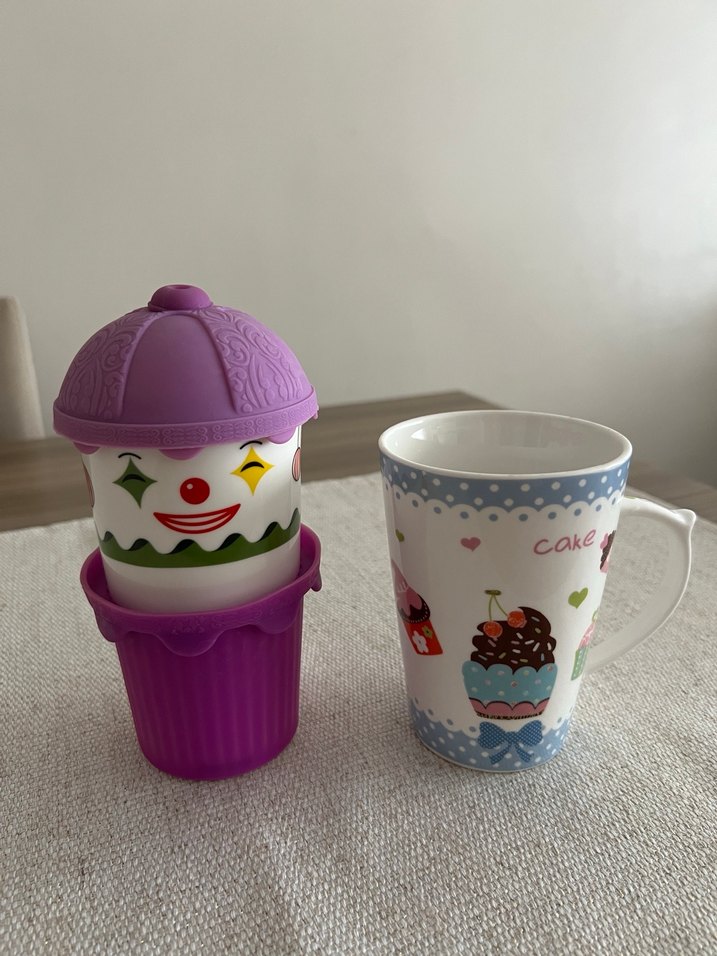 Renkli Mor Kapaklı Bardak ve Desenli Kupa