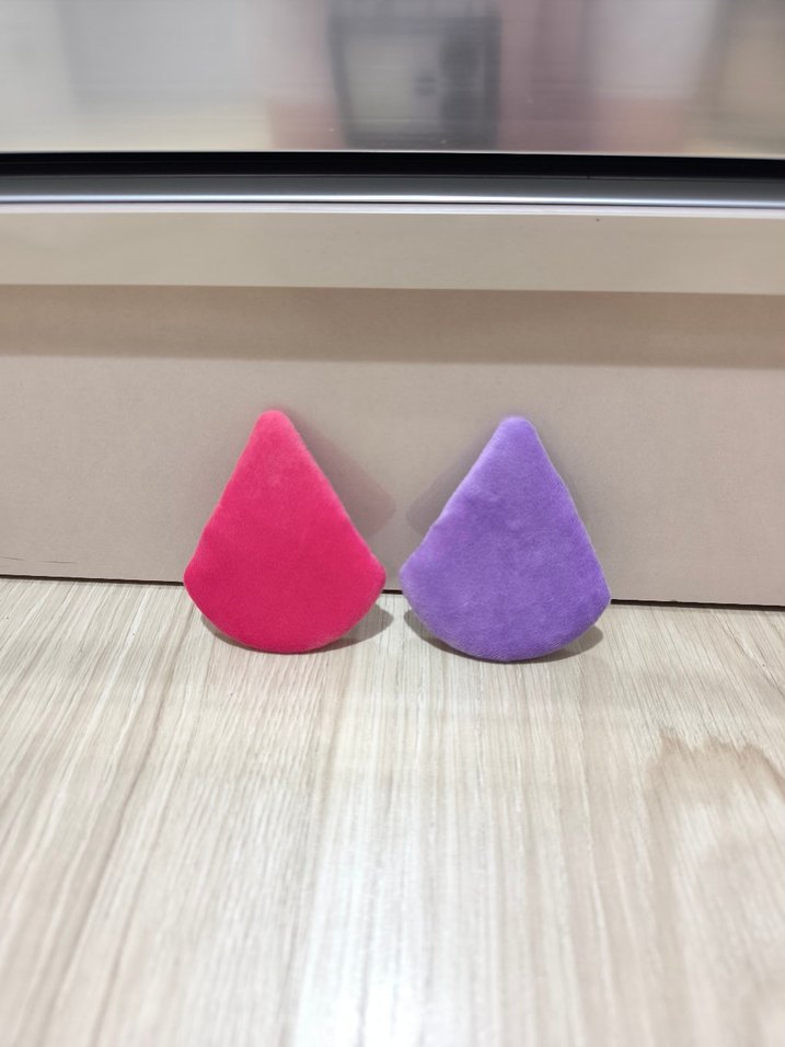 Mor ve pembe renkli makyaj süngerleri, pürüzsüz uygulama için tasarlanmıştır. Fondöten ve kapatıcıyı yumuşak dokusuyla karıştırır.