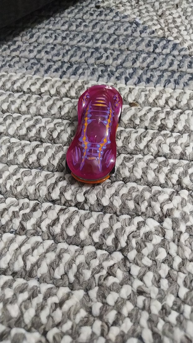 Renkli ve şık tasarımlı mor oyuncak araba, hayal gücünü destekler.