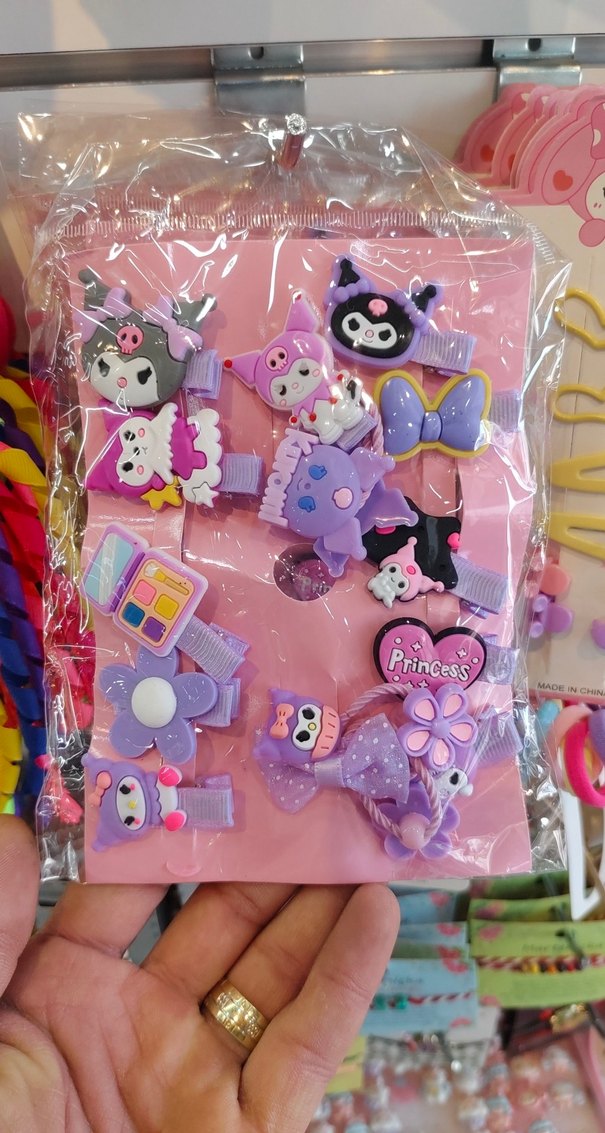 Mor renkte, papyon ve pop kültür desenli, rock punk havasında renkli çocuk saç tokaları. Eğlenceli tarzlar için ideal.