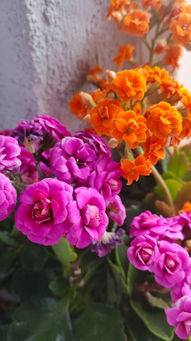 Canlı mor ve turuncu çiçekler, parlak ve renkli açan yapraklarla birlikte. mor iri çiçekli katmerli kalanso gül formunda 25 Kr büyüklüğünde çiçekleri köksüz çelik gönderilecektir