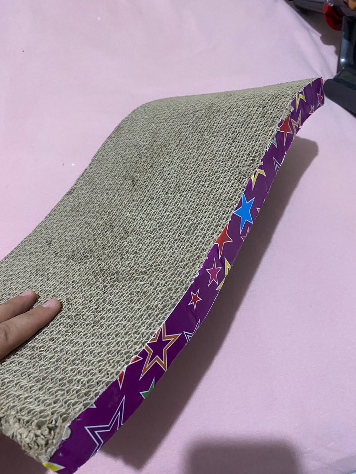 Mor yıldız desenli renkli tırmalama tahtası, kedilerin tırmalaması ve oyun oynaması için tasarlanmıştır.