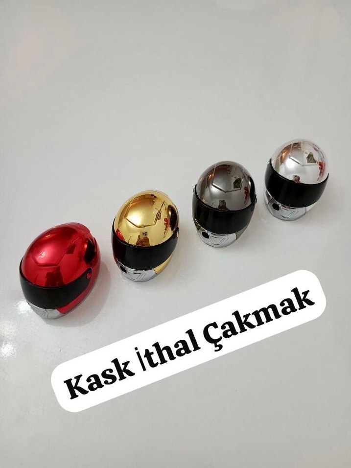 Parlak renklere sahip motosiklet kaskı şeklinde Çakmak, rock punk tarzına uygun.