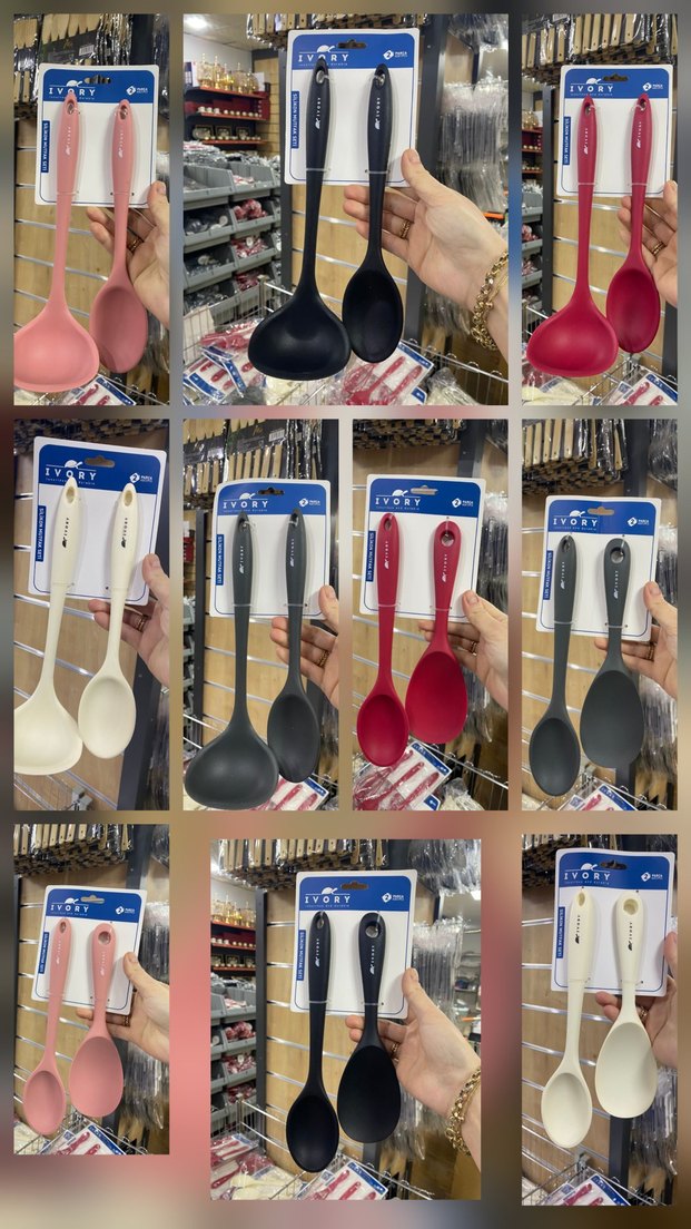 Çeşitli renklerde canlı koyu tonlarda mutfak kepçeleri seti, pişirme ve servis için uygundur.