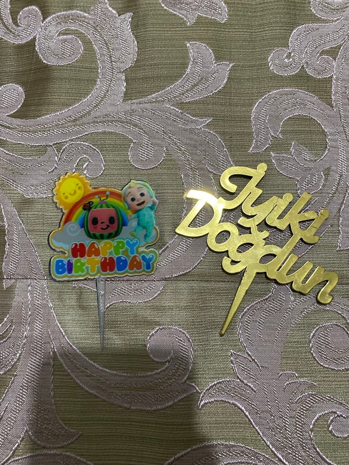 Altın renkli 'İyi ki Doğdun' yazısı ve çizgi film karakterli renkli 'Happy Birthday' pasta süsü.