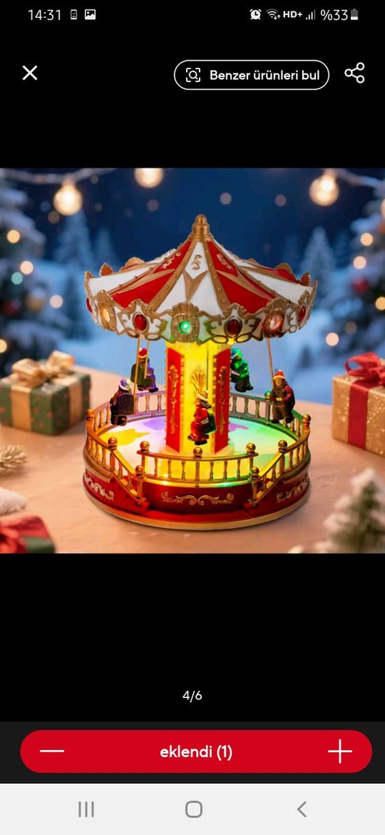 Renkli ışıklarla süslenmiş, müzik çalan dönen atlıkarınca oyuncak, küçük figürlere sahiptir. Festivaller için uygun.