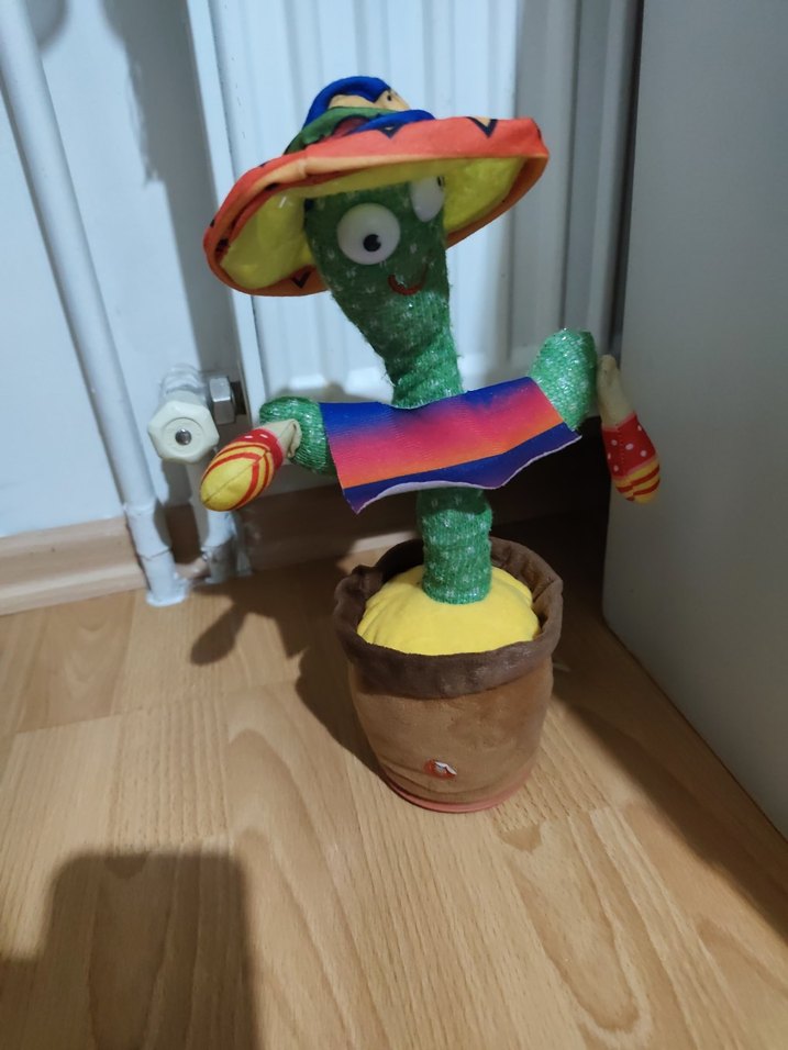 Renkli şapkalı ve marakaslı müzik çalan kaktüs oyuncak, odanıza eğlence katar. çalışmıyor fazla elektrik geldiğinden dolayı yandı peluş oyuncak olarak satılık