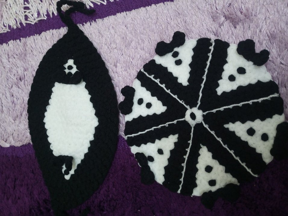 Renkli nakış desenlere sahip yumuşak örme kumaştan yapılmış siyaha beyaz tonlarında yapılmış lif.