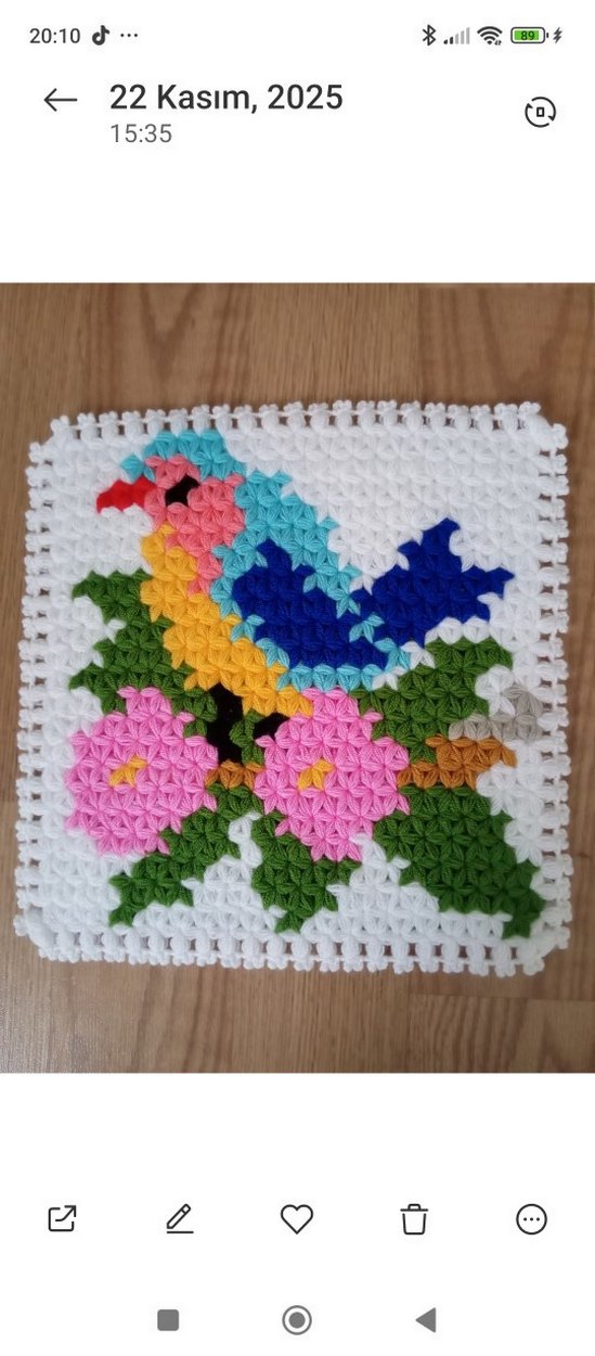 Kuş ve çiçek işlemeli renkli banyo süngeri, yumuşak dokusuyla nazik temizlik sağlar.