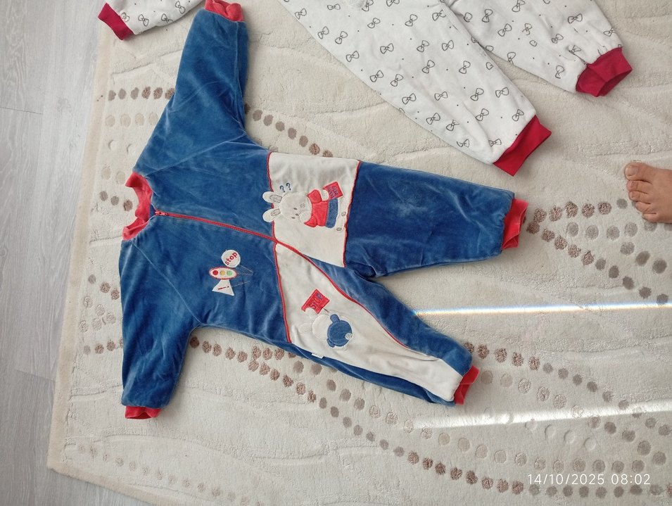 Bu mavi bebek erkek tulumu, renkli nakış detaylara ve fermuarlı kapamaya sahiptir. Yumuşak polar kumaştan üretilmiştir, sokak stili için uygundur. ❄️
