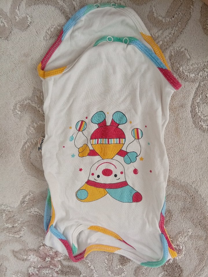 Yumuşak ve sıcak kumaştan, çok renkli kenarları ve nakışlı eğlenceli desenli renkli çocuk çıtçıtlı body