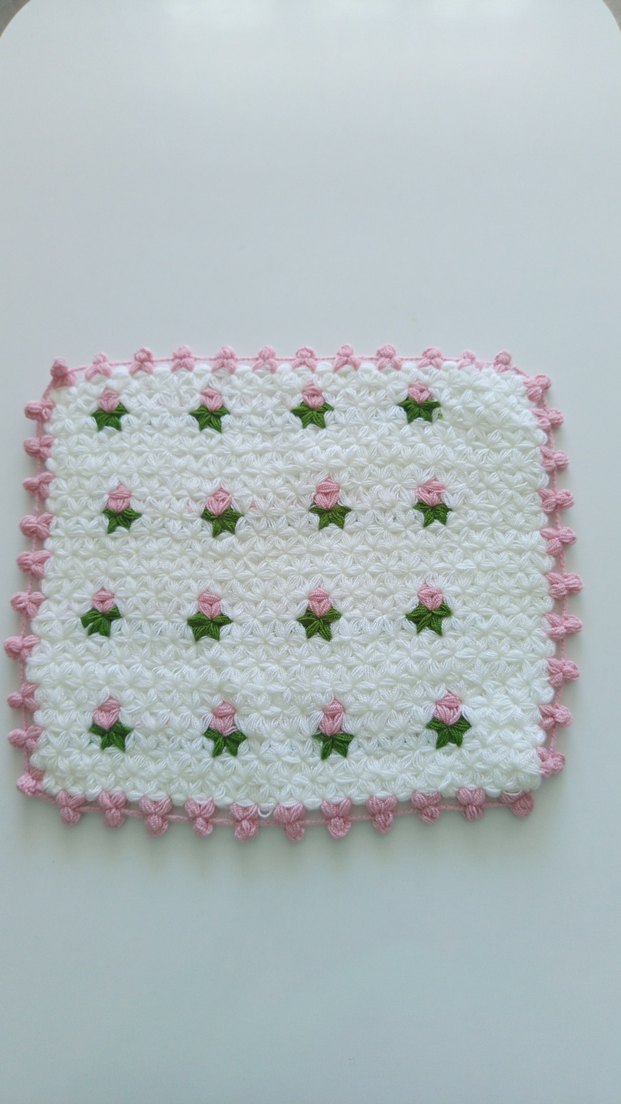 Renkli nakışlı çiçek desenleri ve pembe kenarlarıyla beyaz banyo süngeri, nazik temizlik sağlar.