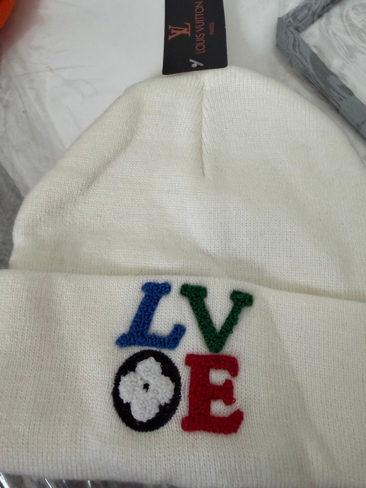 Renkli nakışlı harflerle "LOVE" yazısı bulunan beyaz örme kadın bere, rahat ve sokak modasına uygun bir tasarıma sahiptir. ❄️