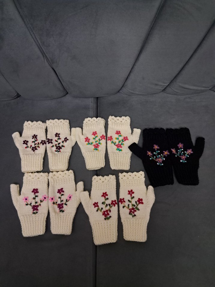 Renkli çiçek nakışlı, örgü parmakları açık eldivenler, rahat ve bohem tarzı yansıtıyor. sıfır ürün, yeni örüldü, ister çeyizlik, ister hediyelik , tanesi 165, toplu alana , tane 150den vereceğim