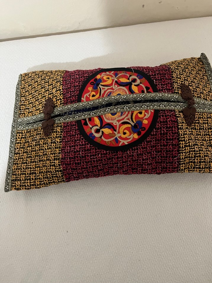 Renkli nakış desenleri. Tekstil malzemeden yapılmıştır, peçetelik