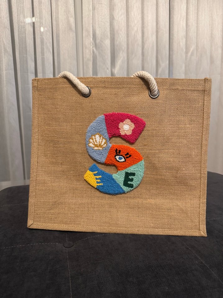 Nakışlı renkli desenleri ve püskül detayıyla bohem tarzda plaj çantası. Dayanıklı ip saplı ve günlük kullanım için geniş tasarımlı tekstil malzeme. İstenilen harf, model ve renkte hazırlanır, görseller örnek olması içindir.