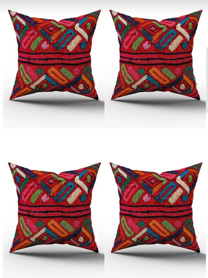 Nakışlı bohem desenlere sahip renkli kırlent kılıfları. Canlı renkleriyle mekanlara enerji katar.