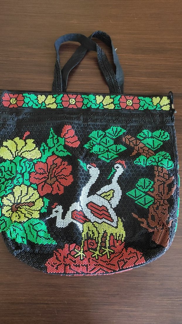 Boncuk işlemeli, renkli nakış desenli kadın çantası. Bohem tarzda, doğa temalı canlı desenlerle günlük kullanıma uygun.