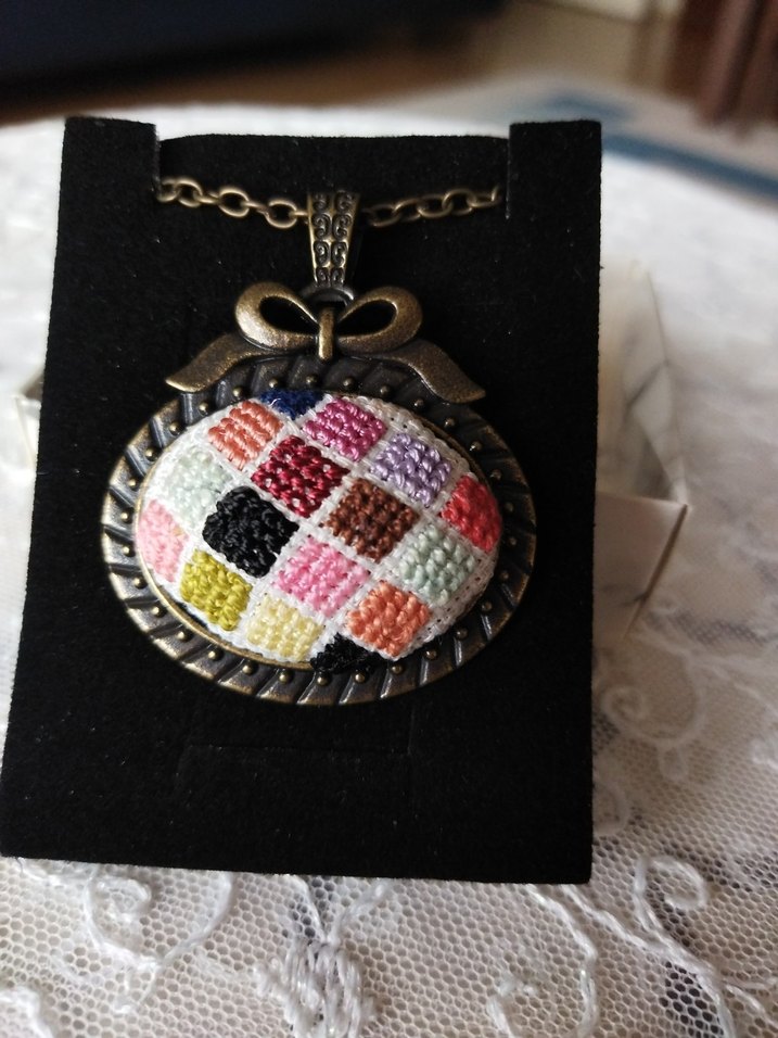 Renkli nakış detaylı, metal fiyonk süslemeli bohem kolye. Günlük kullanıma uygun şık tasarım. Ürün el yapımı olup sıfır üründür.Marka temsilidir.