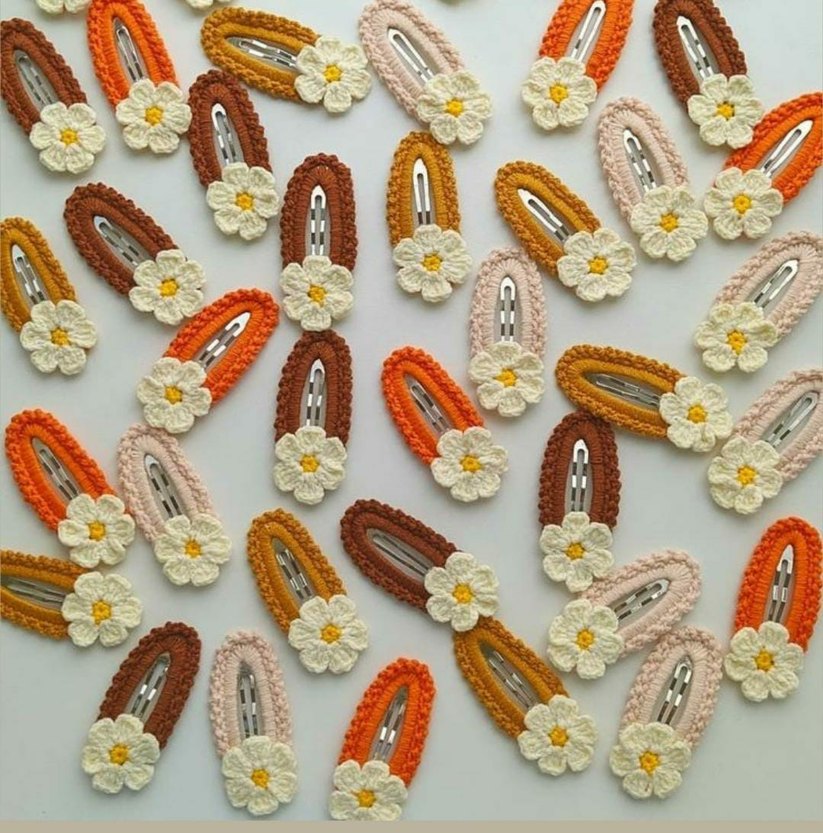 Renkli nakışlı ve boncuklu çiçek detaylı çocuk tokaları, bohem tarzda retro ve canlı bir görünüm sunar.