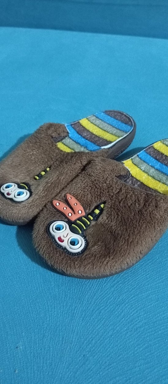 Kahverengi çocuk terlikleri, yumuşak ve sıcak peluş kumaş, renkli nakış detayları ve kama topuk ile tasarlanmıştır. Kürk detaylı, rahat ve günlük kullanım için uygundur. 26 numara