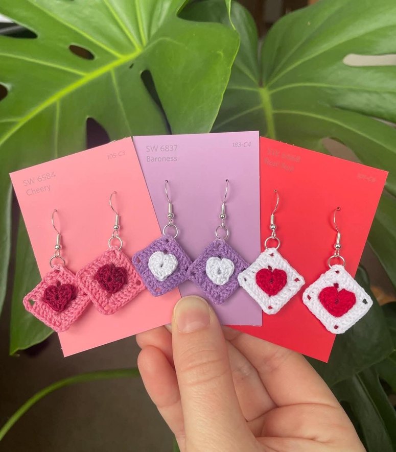 Romantik buluşmalar için normal midi uzunlukta, nakışlı dantel kalpli renkli bohem küpeler.