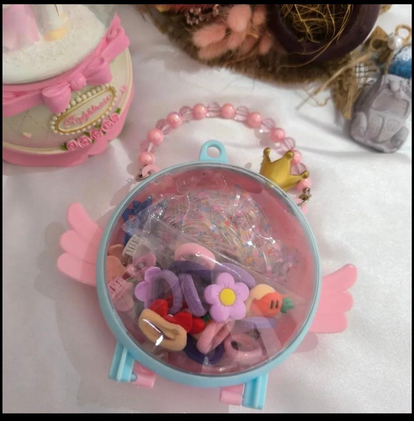 Pastel renklerde, nakışlı elastik çocuk saç tokaları seti. Çok renkli tokalar, bohem ve retro tarzını yansıtan süslü bir kutuda sunulur. kutu içindeki ürünler hediyedir