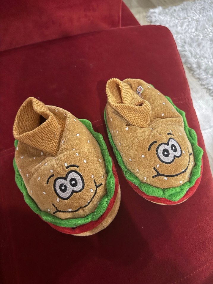 Erkek çocuklar için renkli nakışlı pop kültür yüzleriyle örülmüş, yumuşak ve sıcak polar kumaştan ev terliği. 28-29 numaradır.
