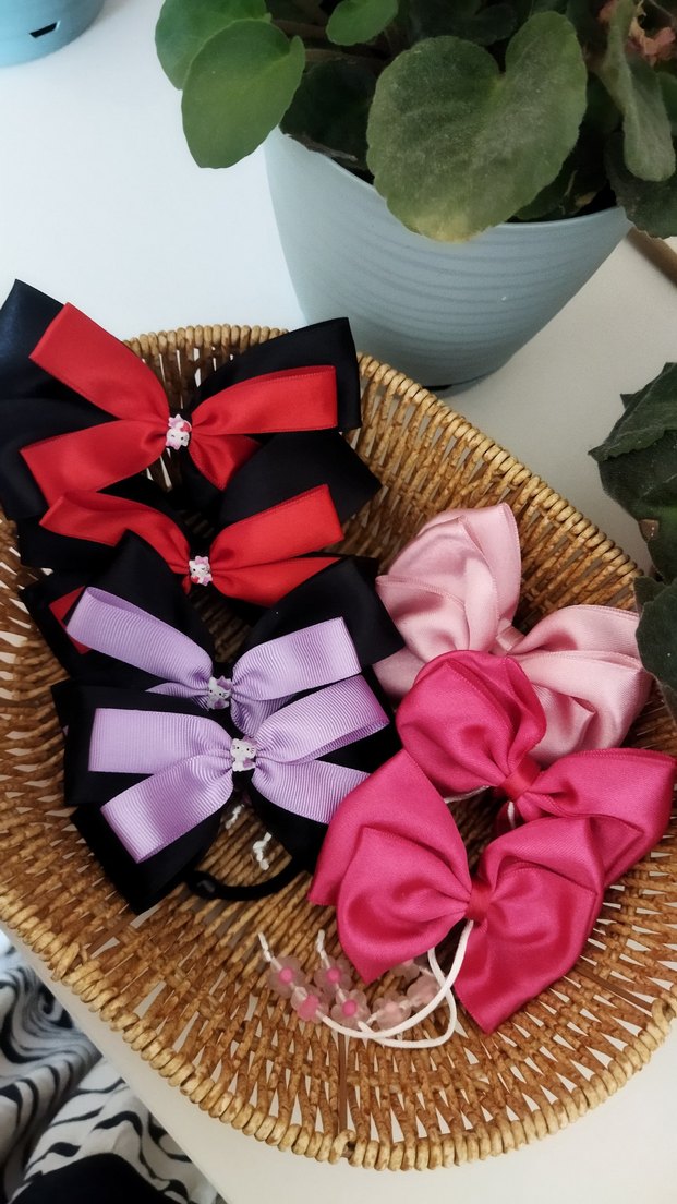 Pembe, kırmızı ve mor tonlarında nakışlı fiyonk detaylı renkli çocuk saç tokaları. adet fiyatı
