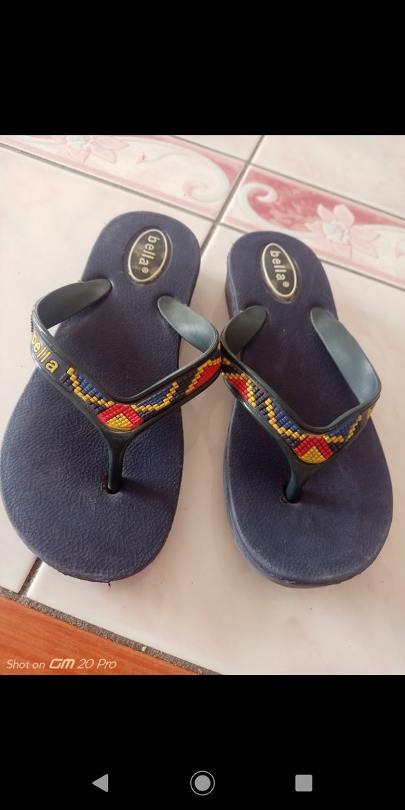 Renkli nakışlı bantları ve tokalı tasarımı ile mavi kadın dolgu topuk terlik, bohem tarz için uygun. Kauçuk malzemeden yapılmıştır.