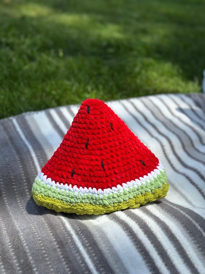 Nakışlı detaylara sahip, yumuşak dokulu karpuz dilimi şeklinde