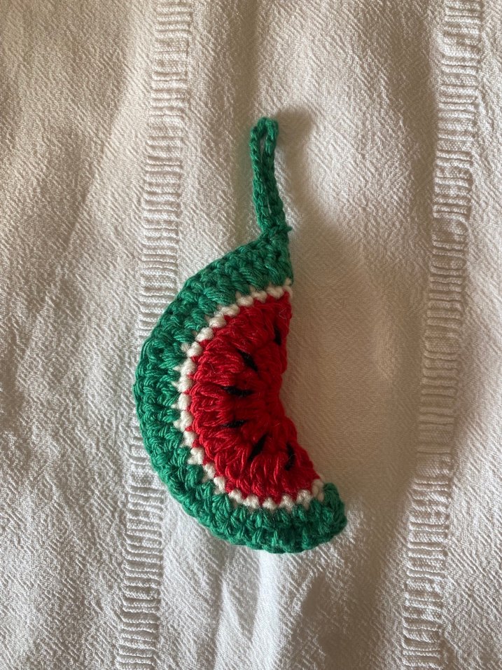 10cm Canlı kırmızı, yeşil ve beyaz renklerde nakışlı karpuz desenine sahip renkli.