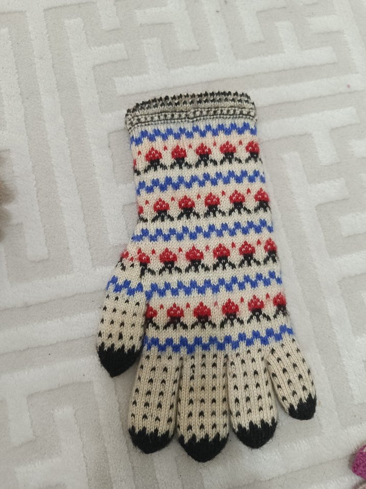 Renkli Nakışlı Örgü Eldiven