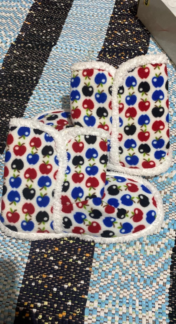 Yumuşak kürk benzeri kumaştan yapılmış, renkli nakışlı ve boncuk süslemeli kız çocuk terlikleri. Bohem ve hippie tarzına uygun.