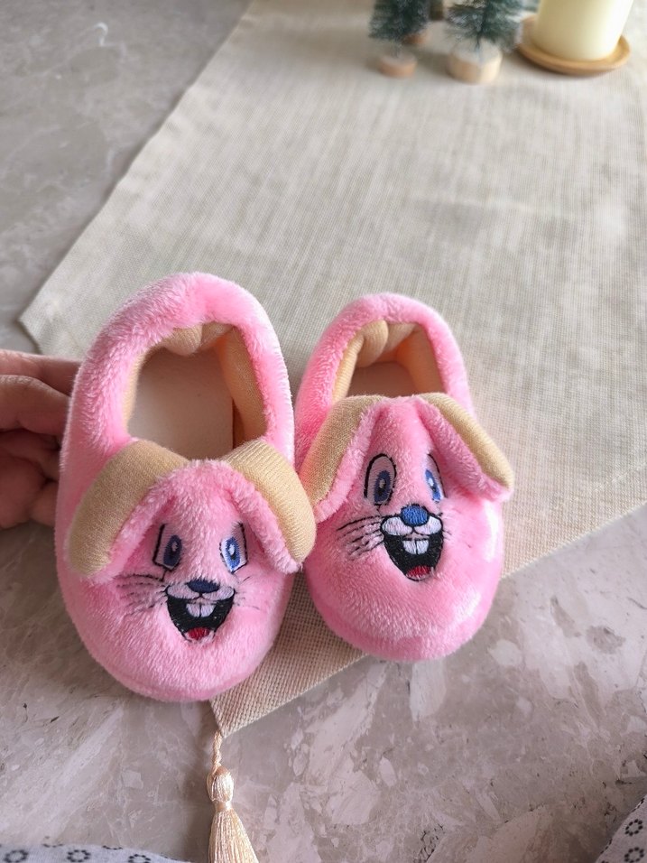 Renkli nakışlı, kürklü detaylı pembe kız çocuk terlikleri, yumuşak ve sıcak tutar. yeni hiç kullanılmadı. 100tl üzeri kargo