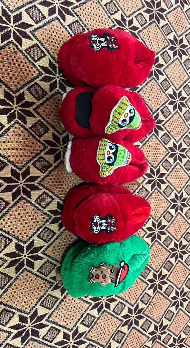 Nakışlı pop kültür desenli, yumuşak kumaşlı, cırt cırtlı renkli kız çocuk sıcak terlikleri. Bohem ve retro tarz için uygun.