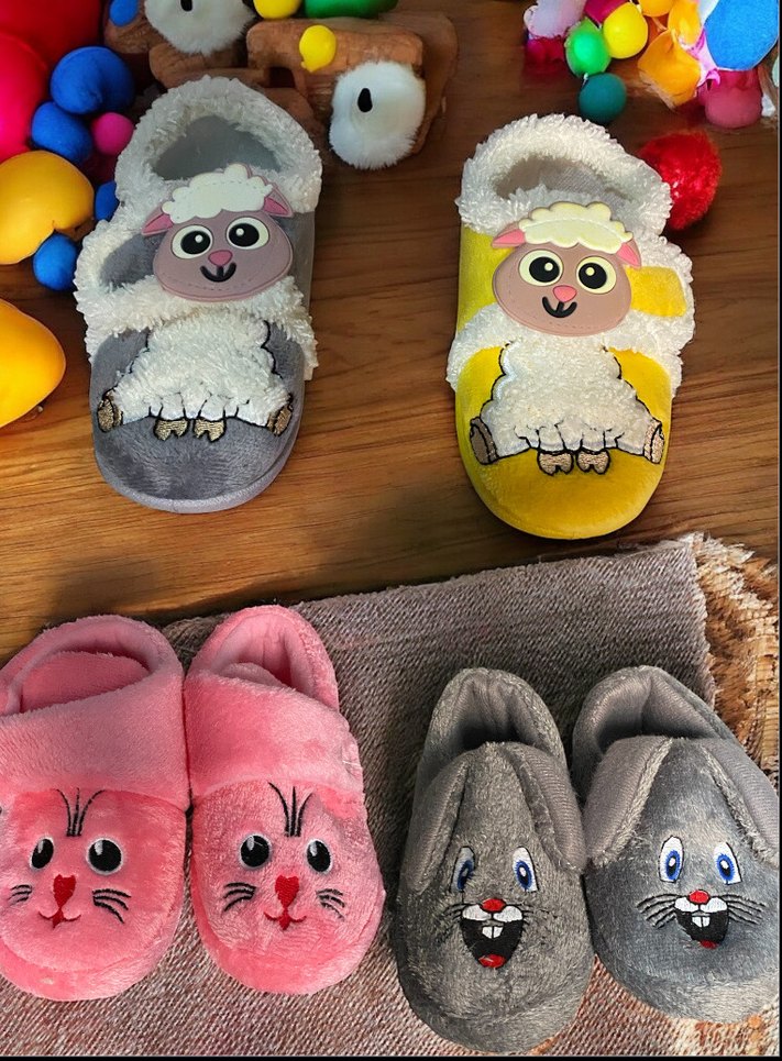 Nakışlı hayvan desenli, yumuşak kürk detaylı ve sıcak tutan renkli kız çocuk terlikleri, konforlu polar kumaştan.