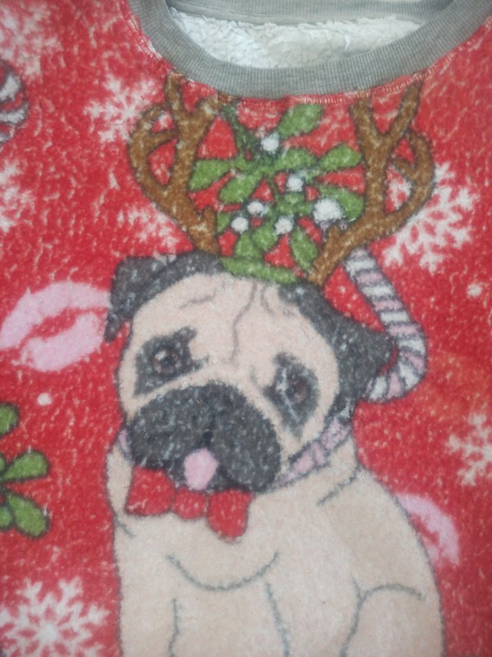 Kırmızı renkli, nakışlı desenlere ve kürk detaylarına sahip pop kültür tarzında köpekli kıyafet
