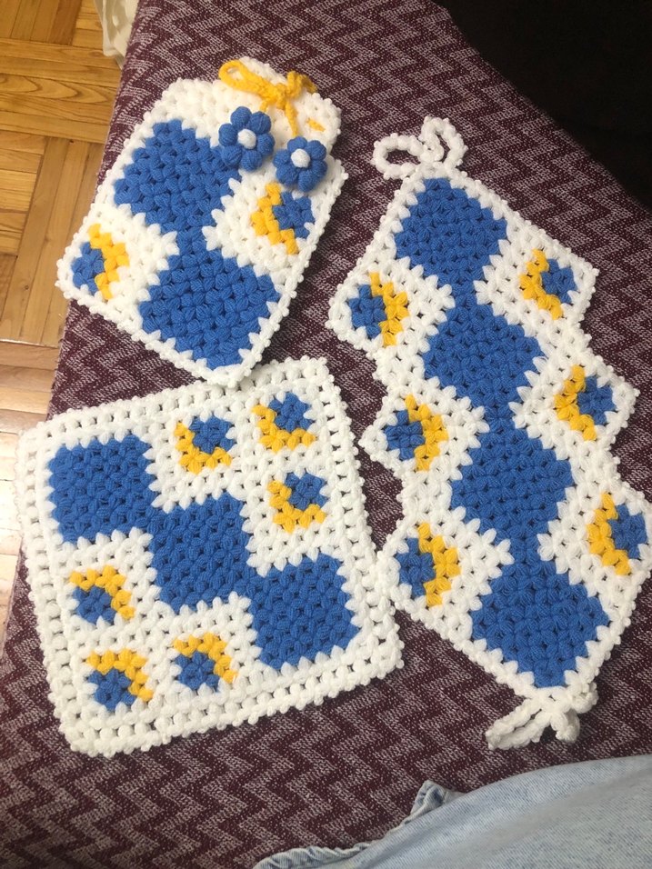 Renkli mavi, beyaz ve sarı nakışlı lif